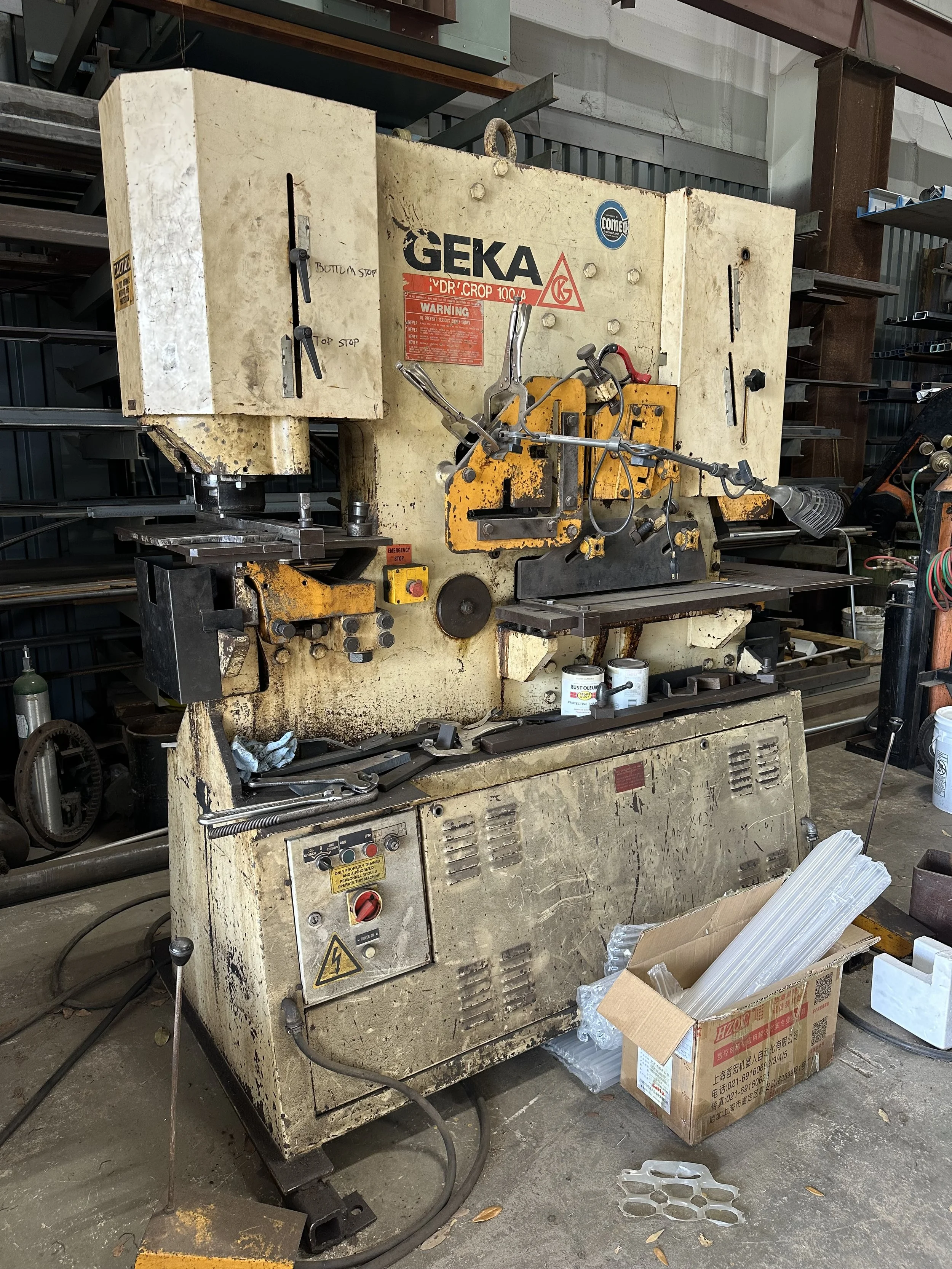 Our GEKA Hydracrop 100A allows us to handle multiple fabrication tasks from a single workstation—making your project faster and more efficient. With capabilities for punching, shearing, and notching, we can process a wide range of structural shapes and plate materials with accuracy and consistency.